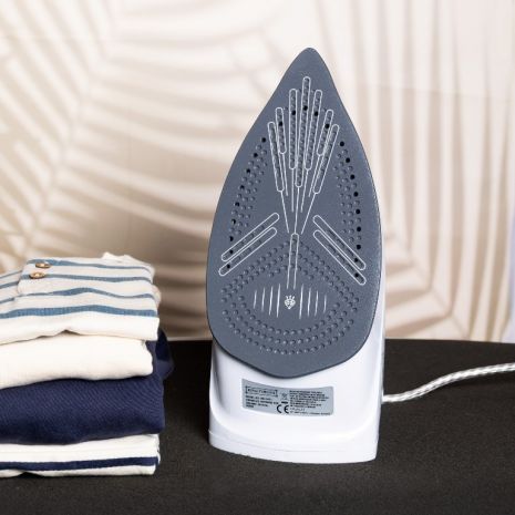 Η πλάκα με διπλή αντικολλητική κεραμική επίστρωση είναι εξαιρετικά ανθεκτική σε γρατζουνιές και διαβρώσεις, ενώ προσφέρει εξαιρετική ολίσθηση πάνω στο ρούχο, ισορροπία και σταθερότητα.