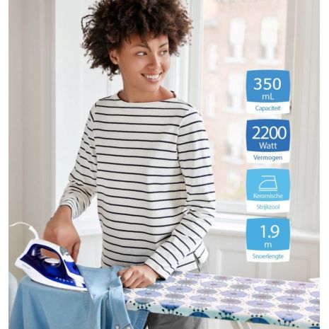 Ισχυρό και αξιόπιστο ατμοσίδερο 2200W με λειτουργίες Dry, Steam, Spray, Burst, Vertical Steam & Self-Cleaning για άψογο αποτέλεσμα σε κάθε ύφασμα.