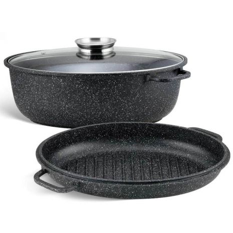 καπάκι από χυτοπρεσαριστό αλουμίνιο που μπορεί να μετατραπεί με αυτόνομο σκεύος για να μαγειρέψετε σε εστίες ή φούρνο