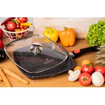 Edenberg, Γκριλιέρα 24cm με 3πλη Μαρμάρινη επίστρωση, αποσπώμενο χερούλι και πυρίμαχο καπάκι απο χυτοπρεσαριστό αλουμίνιο, Black Granite EB 8129