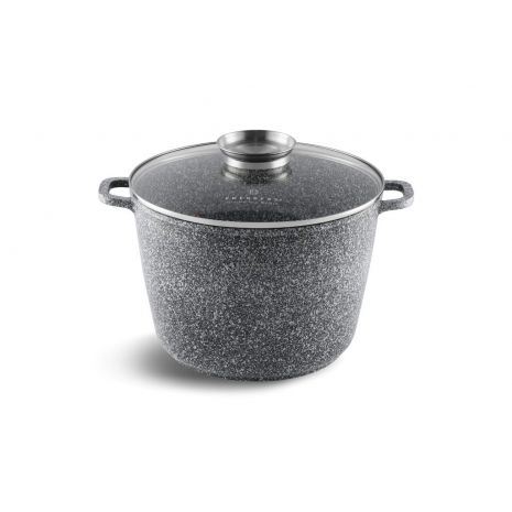 Μία πολύ ψηλή κατσαρόλα 28 cm με αντικολλητική επίστρωση μαρμάρου ιδανικές για σούπες, στιφάδο, κρέας με σάλτσα, βράσιμο και για μεγάλες ποσότητες φαγητού.