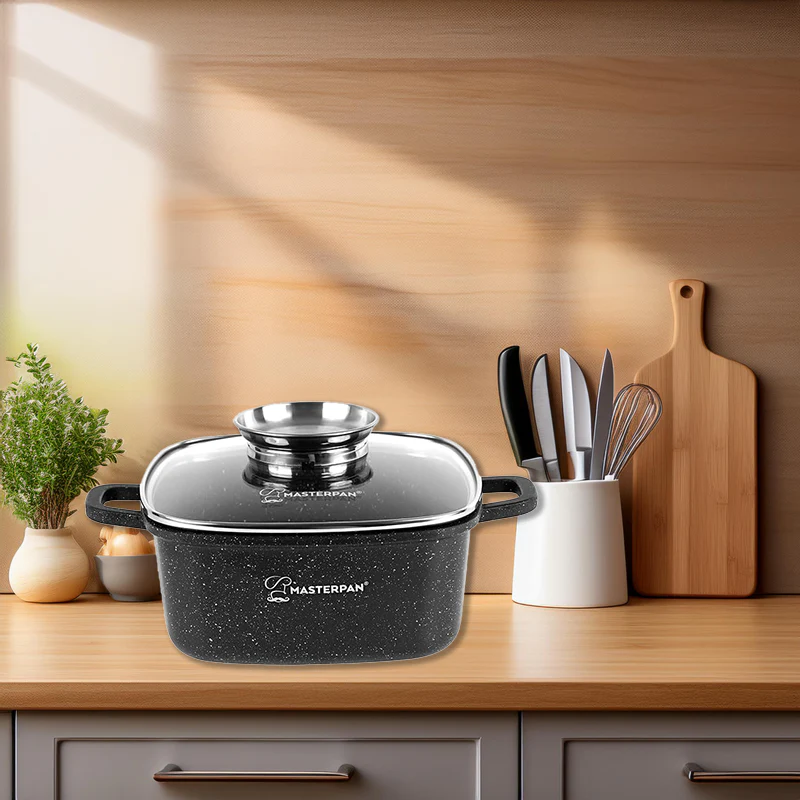 Η τετράγωνη κατσαρόλα MasterPan MP-2104 συνδυάζει επαγγελματική απόδοση, υγιεινό μαγείρεμα και κορυφαία αισθητική, για καθημερινά και απαιτητικά πιάτα χωρίς κόπο.