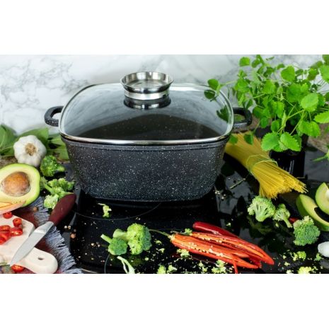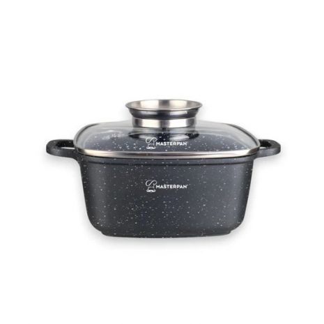 MasterPan Αντικολλητική Τετράγωνη Κατσαρόλα 26cm 5,5Lt με Μαρμάρινη Επίστρωση & Γυάλινο Καπάκι – MP-2104