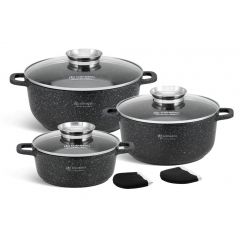 Τα σκεύη της σειράς είναι κατασκευασμένα από χυτοπρεσαριστό αλουμίνιο, εξαιρετικό για ομοιόμορφη και γρήγορη κατανομή θερμότητας. Για την αντικολλητική επίστρωση έχει επιλεγεί, αντίστοιχα, το ανθεκτικότερο υλικό: ο γρανίτης.
