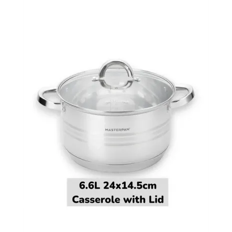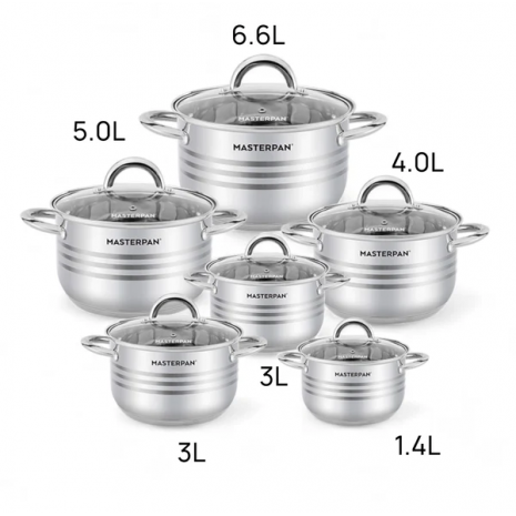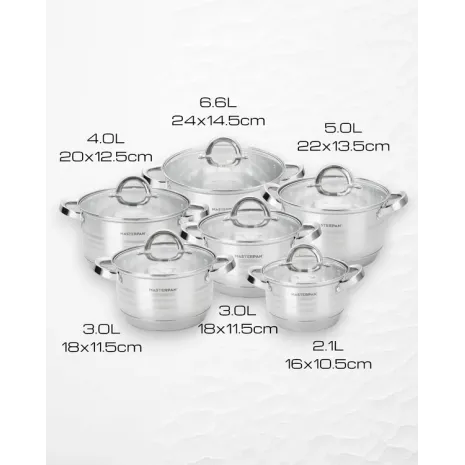 Masterpan, Σετ κατσαρόλες 12 τμχ από Ανοξείδωτο Ατσάλι, με πυρίμαχο καπάκι MP-5120