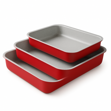 Ένα σετ τριών τεμαχίων αντικολλητικών ταψιών με μαρμαρινη αντιβακτηριδιακη επίστρωση,της HOME STYLE !!!